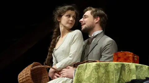 «Бесприданница» Петра Фоменко — не легкая, кружевная акварель, но строгий офорт, прочерченный сильными, резкими, точными штрихами. Приглушенные краски и предельная функциональность декораций. Острые изломы стиля модерн. Никакого мелодраматизма, разухабистого купеческого быта, томных песен и «мохнатых шмелей». Впрочем, романсы звучат и здесь. Горькие, страшные, отчаянные. И цыгане, написанные Островским, тоже есть. Но кажется, что не песни поют, а словно стая макбетовских ведьм вещуют, беду наколдовывают.
